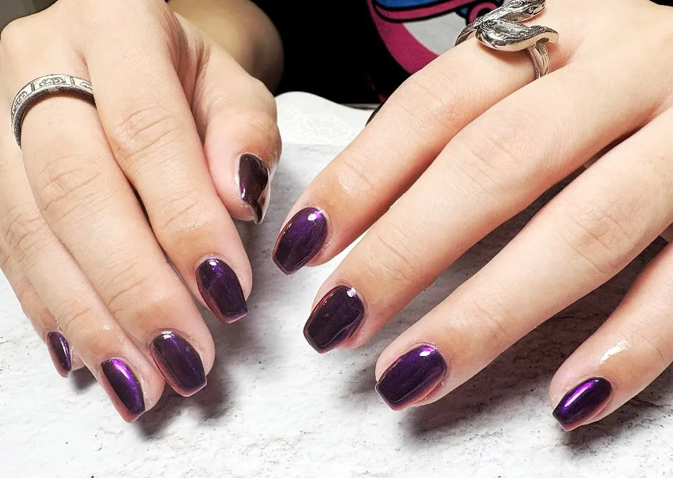 🖤BLACK×PURPLE💜 🖤BLACK×PURPLE💜オーロラネイルは乳白色だったり淡いピンクベースがやっぱり人気ですが今回は黒ベースに紫のオーロラぁあ黒ベースだとオーロラの色がしっかり出るのでオーロラの光じゃない全体の色もだい…