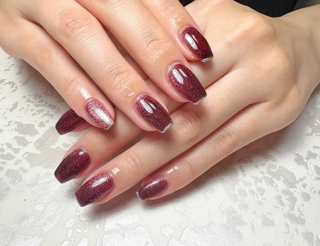 🌈先端ラインっ 🌈先端ラインっぷるまぐボルドーラメベースに先端シルバーラメ😌🤍🤍🤍いつなんどきみてもかわちい組み合わせ✊#栄ネイル#栄ネイルサロン#栄スカルプ#栄パラジェル#栄パラジェル登録サロン#スカルプデザインネ…