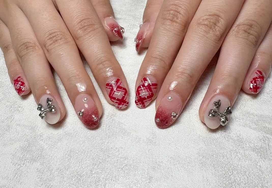 チェック×フラッシュ チェック×フラッシュ今年の冬はチェックまみれになりそうな予感🫣いろんなチェック柄をやらせていただいてたのすぃ🍎フラッシュのグラデーションとの組み合わせも大人気です💗小指にこのチェックをしたら線…