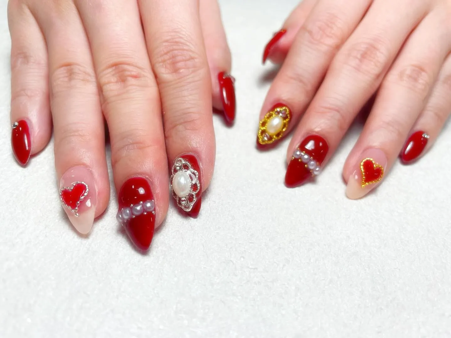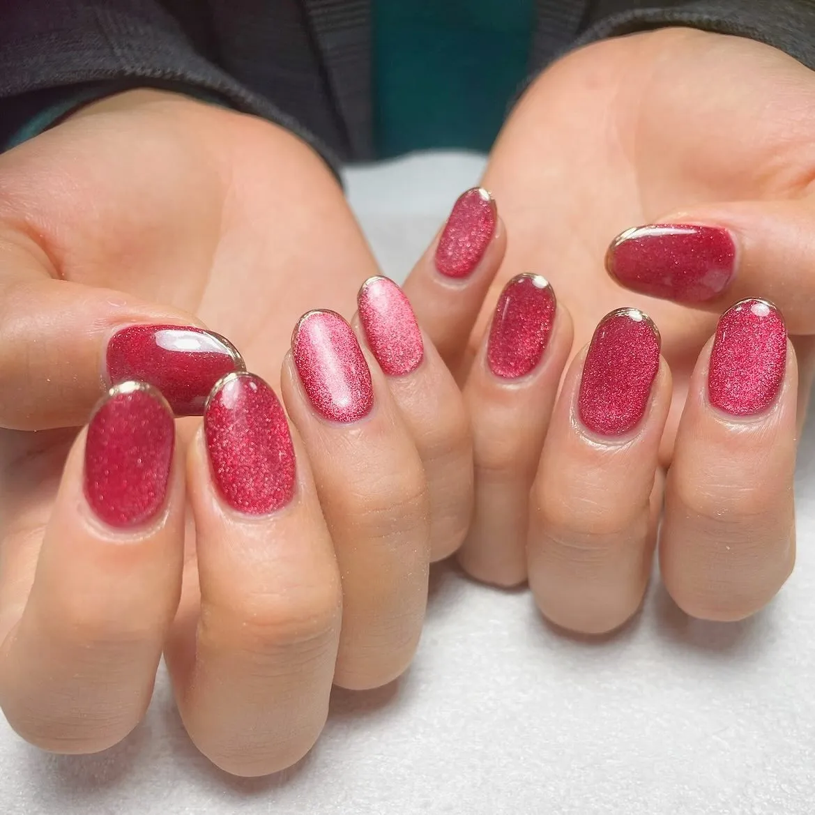 ❤️🧲❤️ ❤️🧲❤️真っ赤なマグネットがかわいすぎます!!先端にミラーラインで一気に華やかで大人のバレンタインネイルって感じです🍫#栄ネイル#栄ネイルサロン#栄スカルプ#栄パラジェル#栄パラジェル登録サロン#ス…