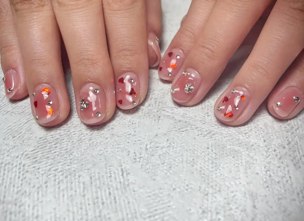 ❤☺️✨ ❤☺️✨じゅわっとチーク☺️に小さいブイカット✨とハートのホログラム❤が合わさってラブリーすぎます!!ショートネイルでもこんなにかわいいです💅💗#栄ネイル#栄ネイルサロン#栄スカルプ#栄パラジェル#栄パラ…