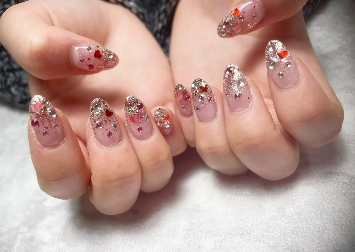 ✨💗✨💗✨ ✨💗✨💗✨10本パーツ付け放題🤍ベースのお色をラメグラにすることでギラギラになれますぅ🥰🌟流行りの平成ギャル感かわいすぎます!❤️おんなのこはいつだってキラキラとハートがすき💗#栄ネイル#栄ネイルサロン#…