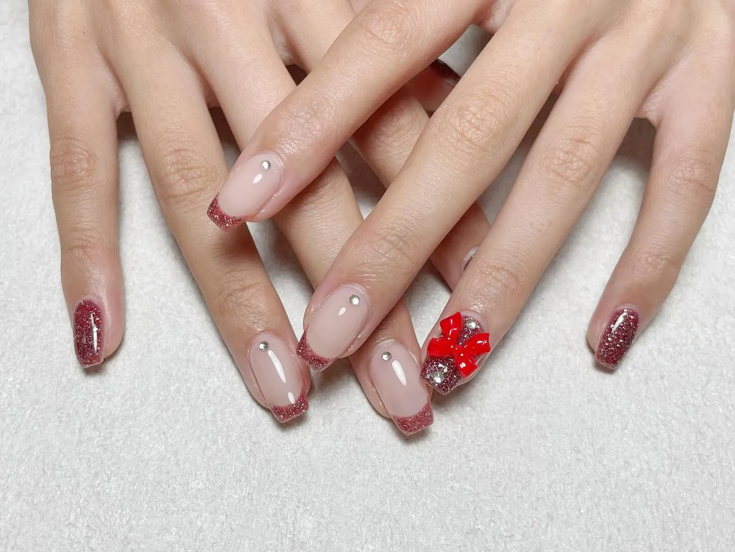 クリスマス🎄✨ クリスマス🎄✨シンプルで綺麗めなクリスマスネイル💅親指にはリースとツリーが🙊💕とっても可愛いです🪅#名古屋#栄#栄ネイルサロン#栄ネイル#栄スカルプ#栄パラジェル#栄パラジェル登録サロン#プロテケアネイ…