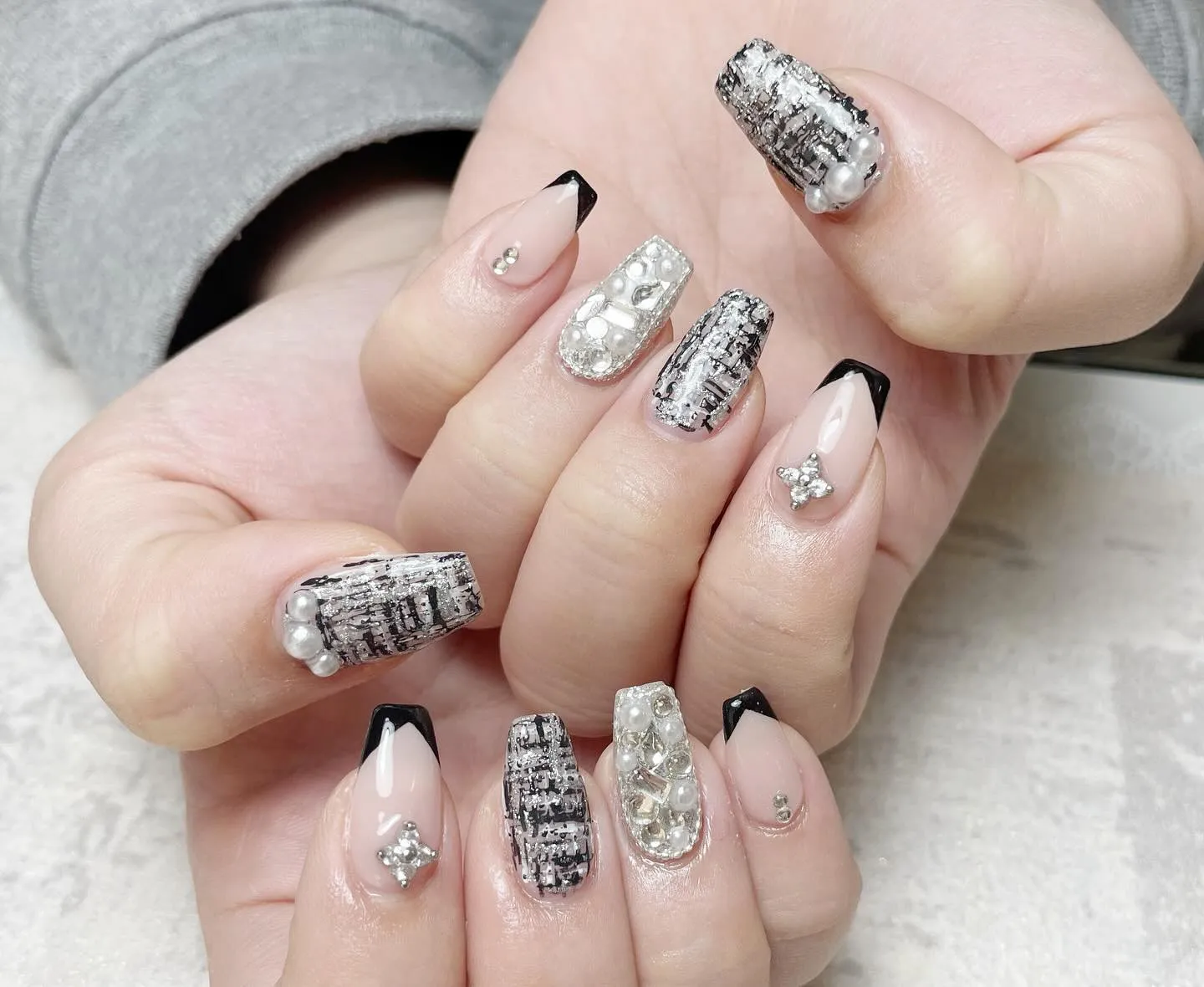 🖤💎🖤💎🖤 🖤💎🖤💎🖤チェックネイルが大人気ですが、やっぱり冬はツイードネイルも可愛いです😍🫶埋め尽くしに黒フレンチもあって、オシャレなデザインです🖤✨#名古屋#栄#栄ネイルサロン#栄ネイル#栄スカルプ#栄パラジェル…