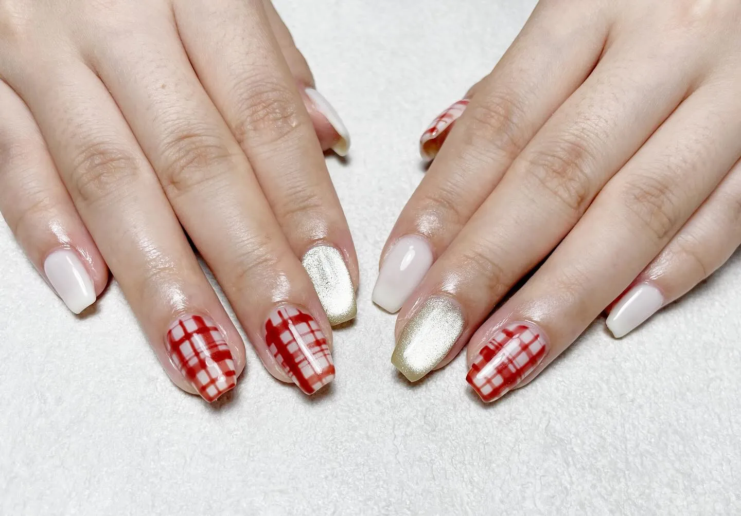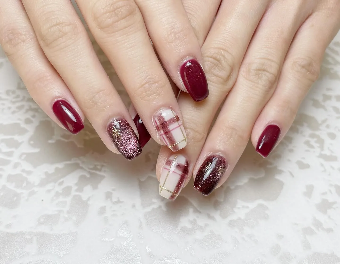 ♥️ボルドーチェック♥️ ♥️ボルドーチェック♥️ボルドーとチェックの組み合わせが最強です✨ゴールドがよりクリスマス感を増してワクワクします🎄#名古屋#栄#栄ネイルサロン#栄ネイル#栄スカルプ#栄パラジェル#栄パラジェル登録サロ…